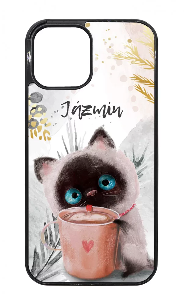 Kávézós cicus - Téli mintás Apple iPhone 12 Pro Max készülékre rögzíthető telefontok
