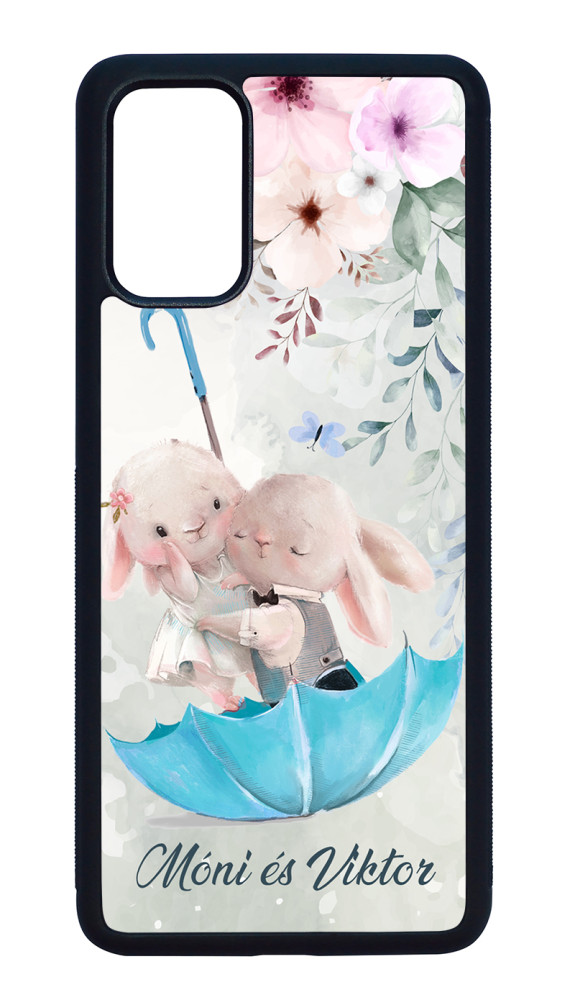 Valentin napi kollekció - Kérd a neveddel - Esernyős nyuszi szerelem Samsung Galaxy S20 Plus készülékre rögzíthető telefontok