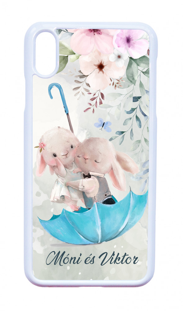 Valentin napi kollekció - Kérd a neveddel - Esernyős nyuszi szerelem Apple iPhone Xs Max készülékre rögzíthető telefontok