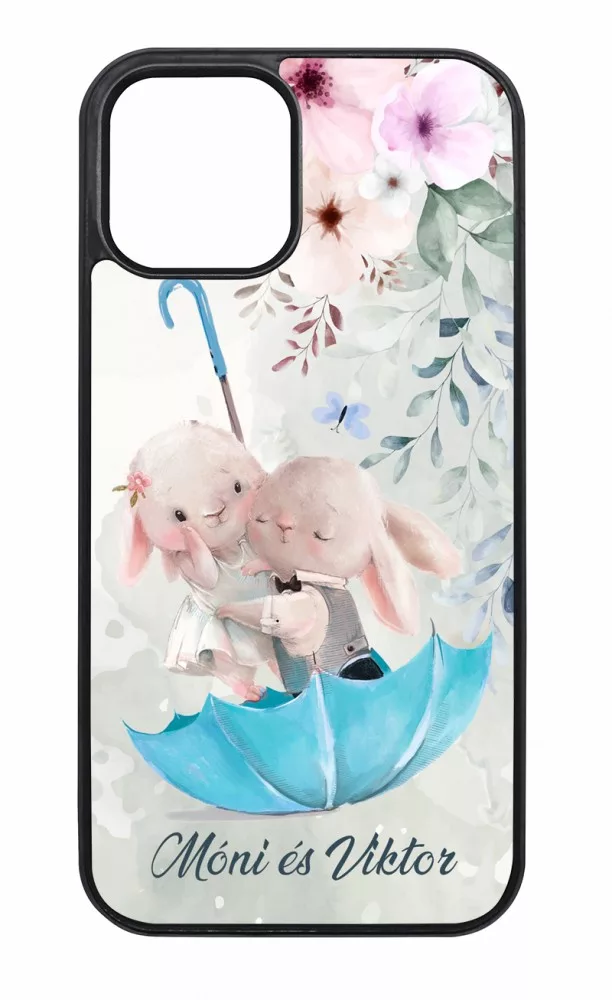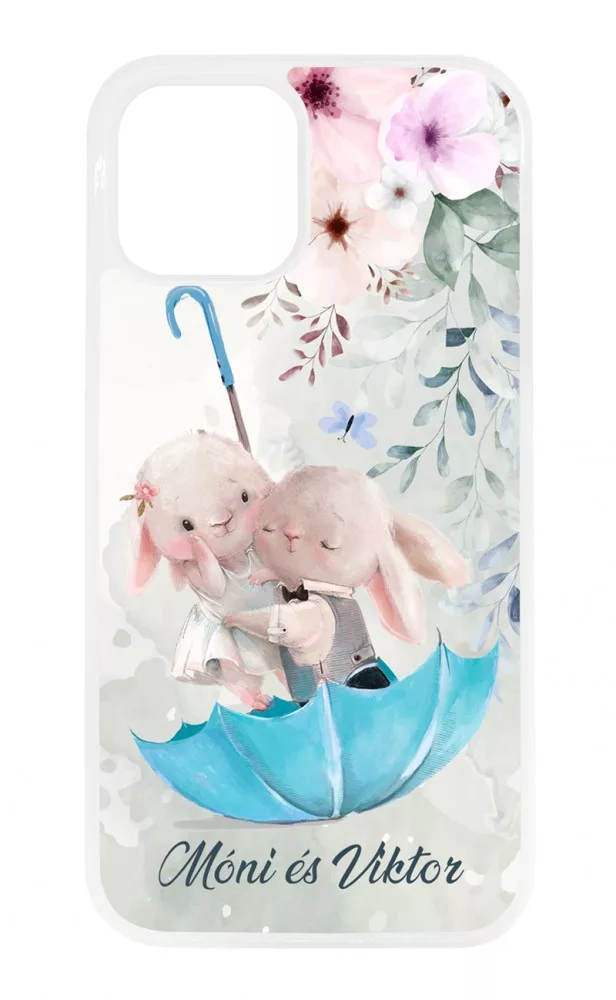 Kérd a neveddel - Esernyős nyuszi szerelem - szilikon iPhone tok