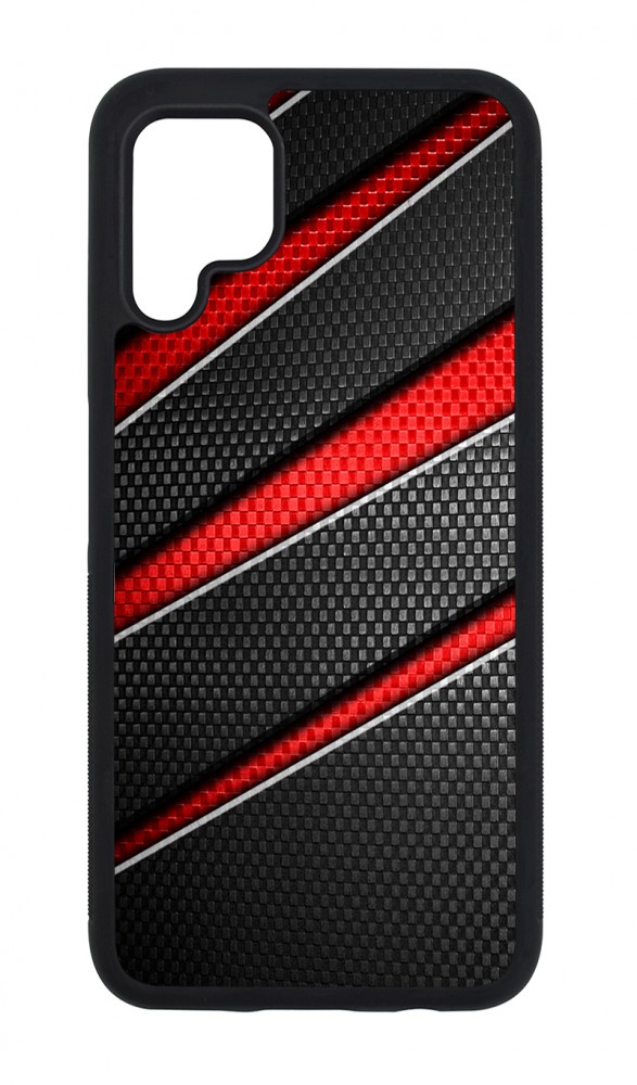 Piros fekete csíkos karbon mintás Huawei tok
