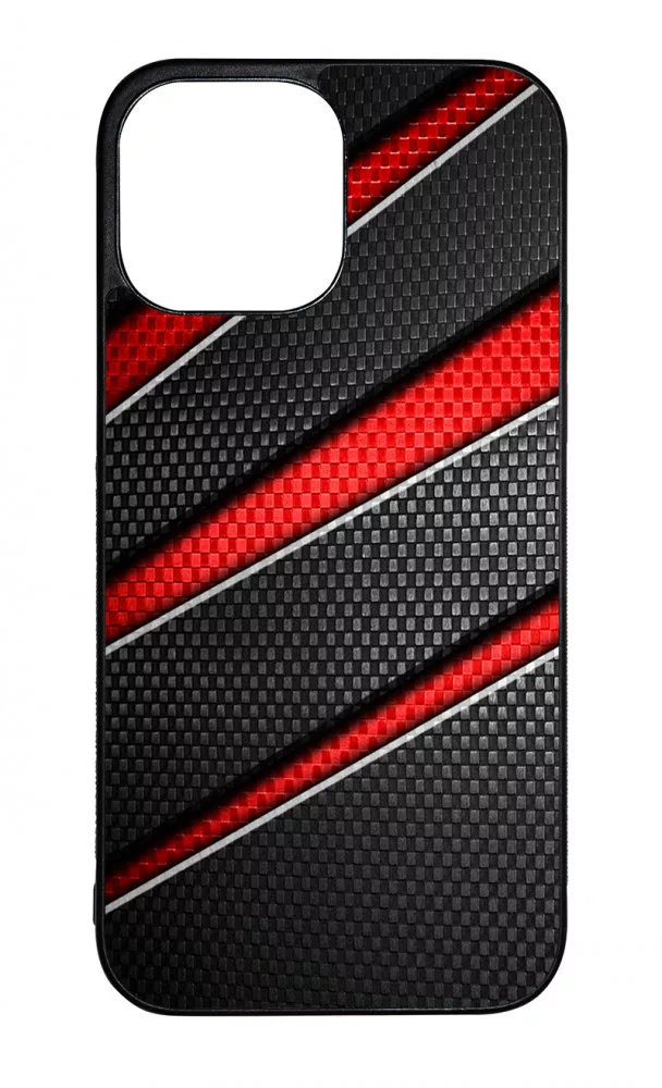 Piros fekete csíkos karbon mintás Apple iPhone 13 Pro Max készülékre rögzíthető telefontok