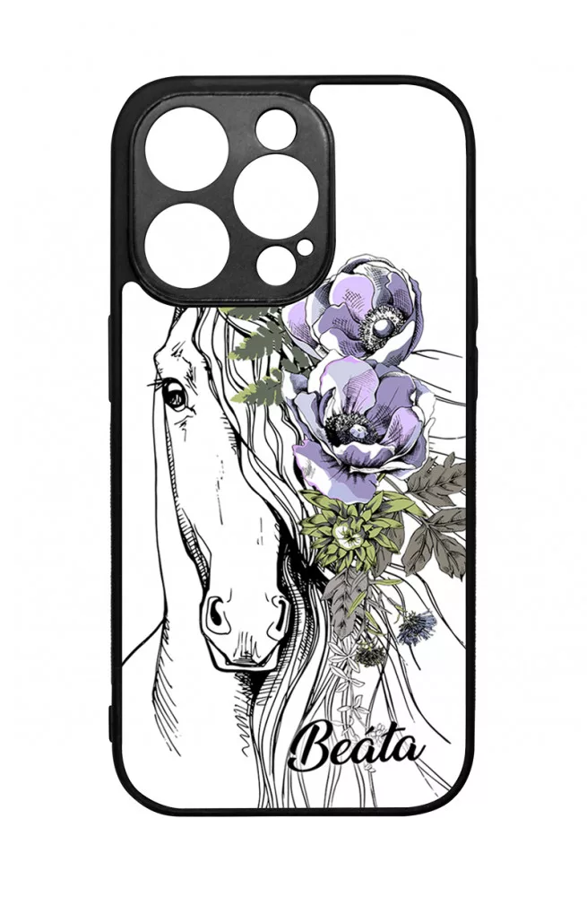 Rajzolt virágos lovas Apple iPhone 14 Pro készülékre rögzíthető telefontok