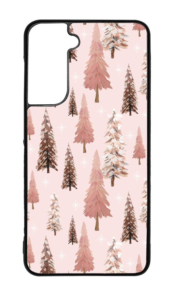 Rózsaszín karácsonyi fenyőfa mintás Samsung Galaxy S21 FE készülékre rögzíthető telefontok