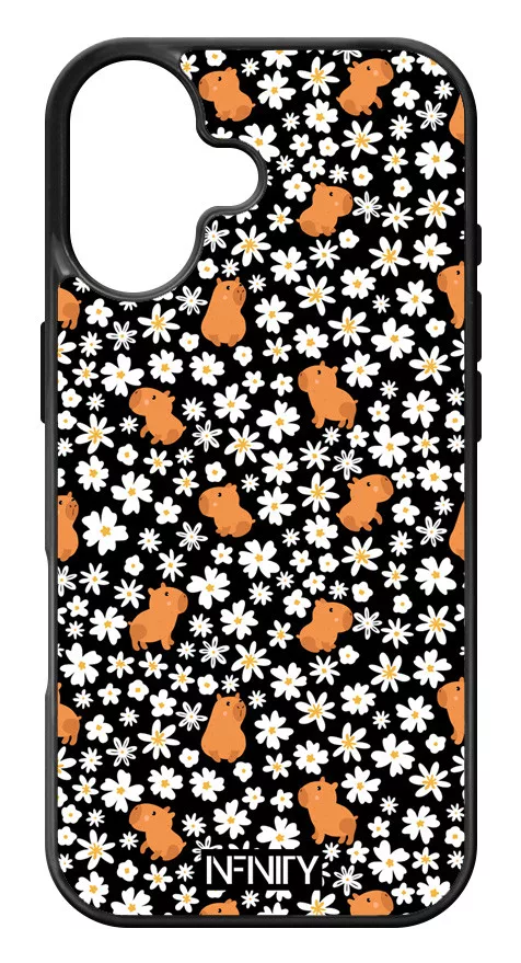 Cuki feketén fehér virágos capybara – A Te személyes Zen mestered az iPhone-odon