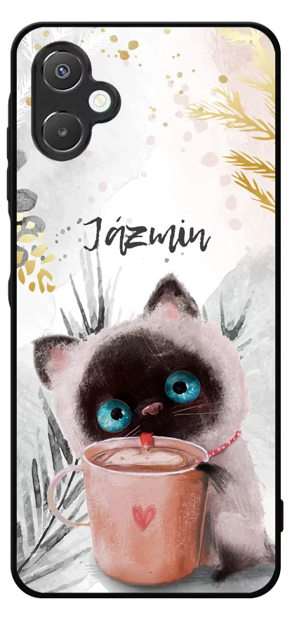 CUKISÁG kollekció - Kérd a neveddel - Kávézós cicus - Téli mintás Samsung Galaxy A06 készülékre rögzíthető telefontok