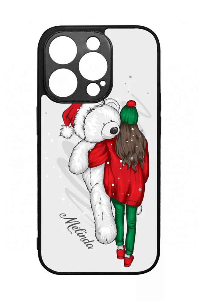 Kérd a neveddel - Xmas Lány & Maci - iPhone 14 Pro Magsafe tok