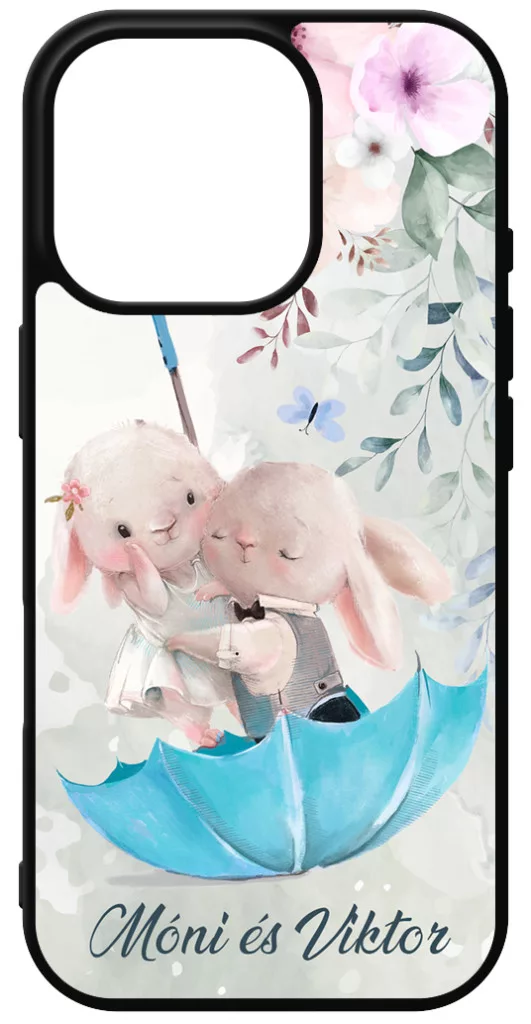 Kérd a neveddel - Esernyős nyuszi szerelem - iPhone 16 Pro Magsafe tok