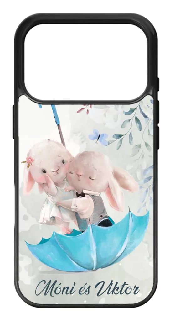 Kérd a neveddel - Esernyős nyuszi szerelem - iPhone 17 Pro Max MagSafe tok