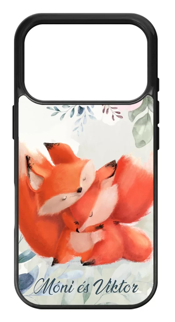 Valentin napi kollekció - Kérd a neveddel - Cuki róka szerelem Apple iPhone 17 Pro készülékre rögzíthető telefontok