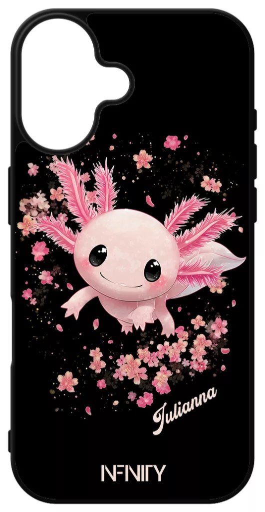 Cuki Rózsaszín virágos Axolotl Apple iPhone 16 készülékre rögzíthető telefontok
