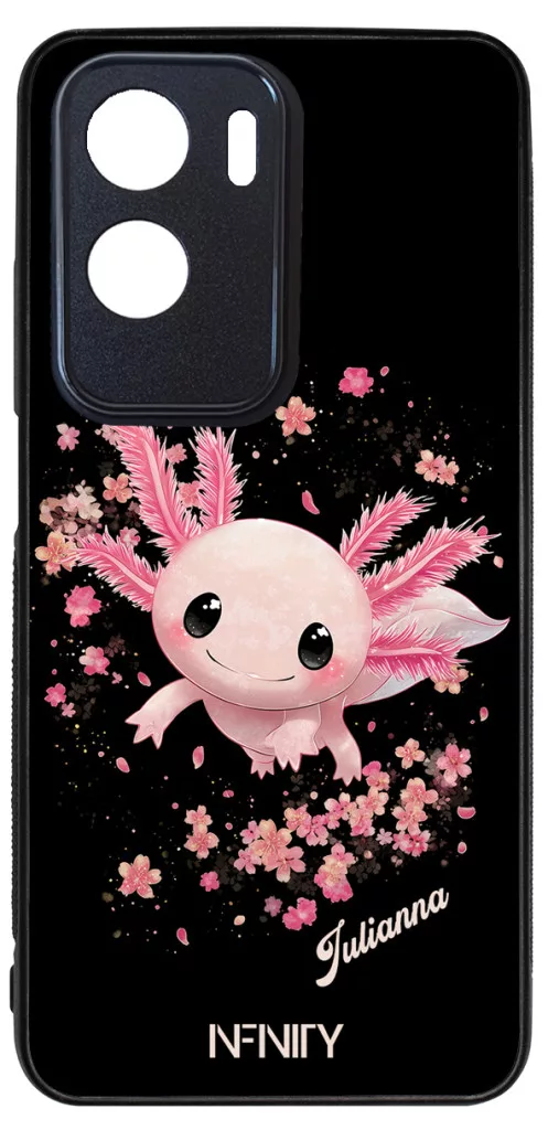 Névvel kérhető - Cuki Rózsaszín virágos Axolotl - Honor szilikon tok