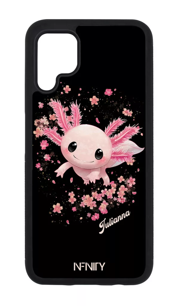 Névvel kérhető - Cuki Rózsaszín virágos Axolotl - Huawei szilikon tok