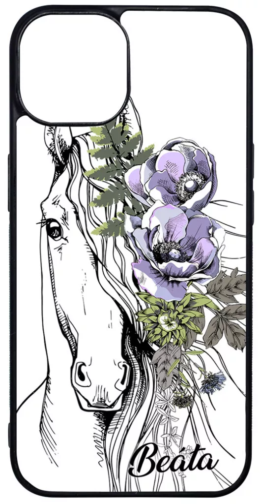 Kérd a neveddel - Rajzolt virágos lovas - iPhone 16 MagSafe tok