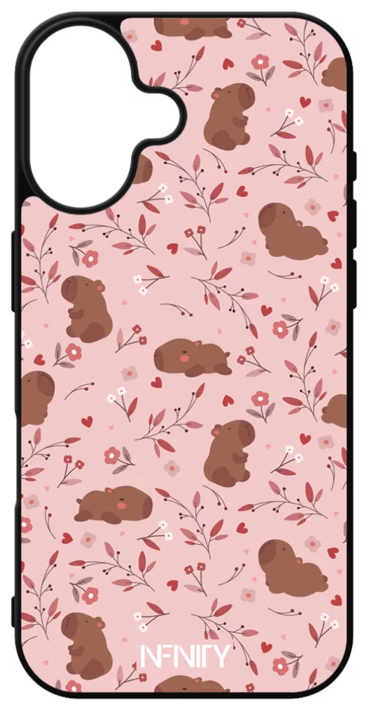 Rózsaszín virágos capybara Apple iPhone 16 készülékre rögzíthető telefontok