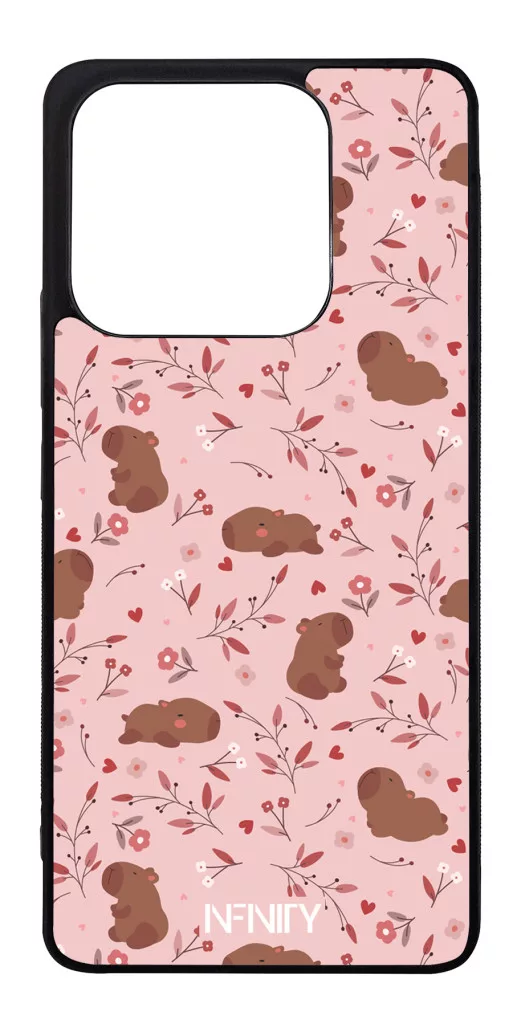 Rózsaszín virágos capybara Xiaomi Redmi Note 14 4G készülékre rögzíthető telefontok