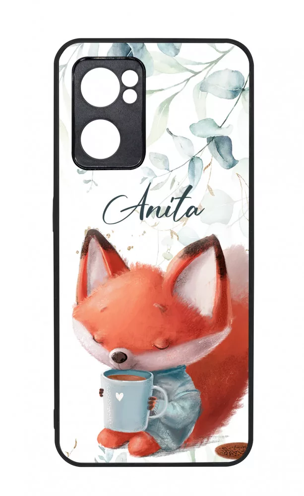Őszi mintás - Kérd a neveddel - Cuki kávés róka mintás Oppo készülékre rögzíthető telefontok