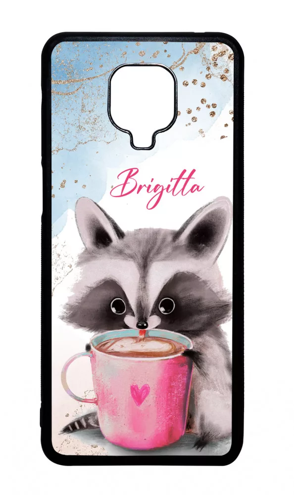 Őszi mintás - Kérd a neveddel - Cuki mosómaci kávéval Xiaomi készülékre rögzíthető telefontok