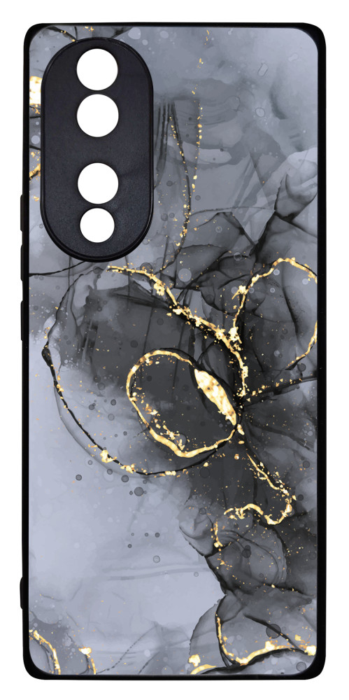 Golden Black - Fekete és Arany Márvány mintás hatás Honor 70 készülékre rögzíthető telefontok