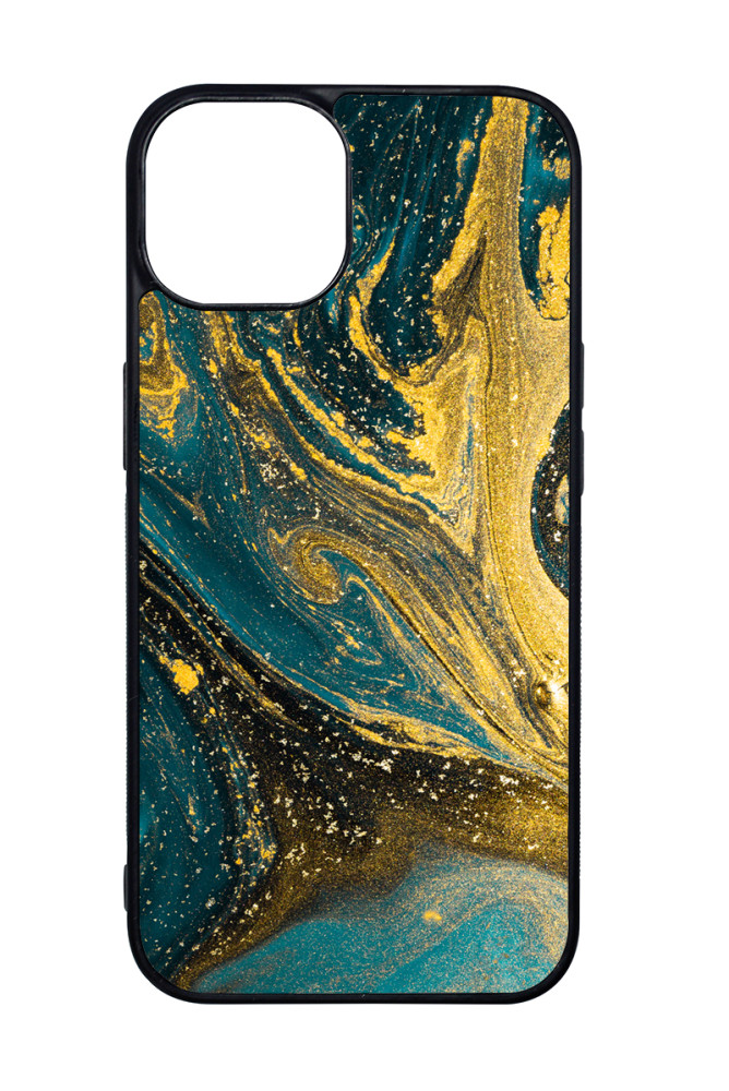 Golden Blue - Arany és kék Márvány mintás Apple iPhone 15 Pro készülékre rögzíthető telefontok