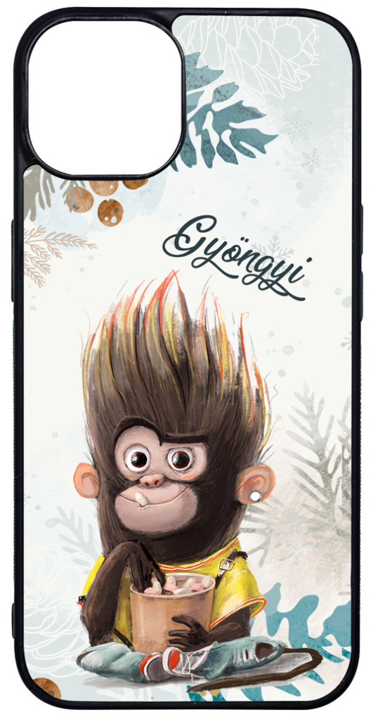 CUKISÁG kollekció - Kérd a neveddel - Kávés Maki - Téli mintás Apple iPhone 15 készülékre rögzíthető telefontok