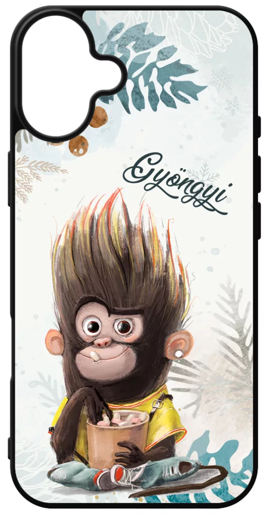 CUKISÁG kollekció - Kérd a neveddel - Kávés Maki - Téli mintás Apple iPhone 16 Plus készülékre rögzíthető telefontok