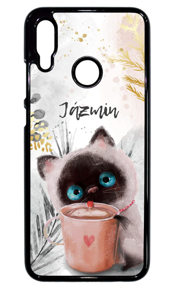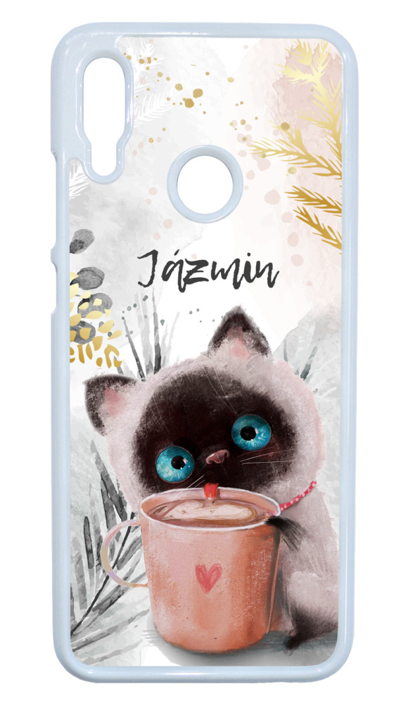 CUKISÁG kollekció - Kérd a neveddel - Kávézós cicus - Téli mintás Huawei P Smart 2019 készülékre rögzíthető telefontok
