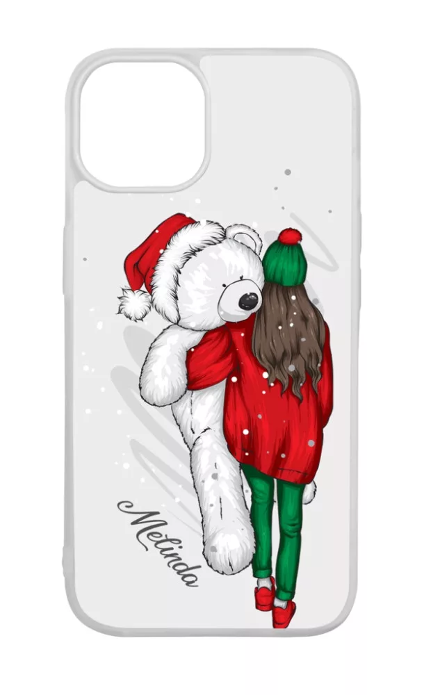 Kérd a neveddel - Lány & Maci - csajos karácsony Apple iPhone 15 Pro készülékre rögzíthető telefontok