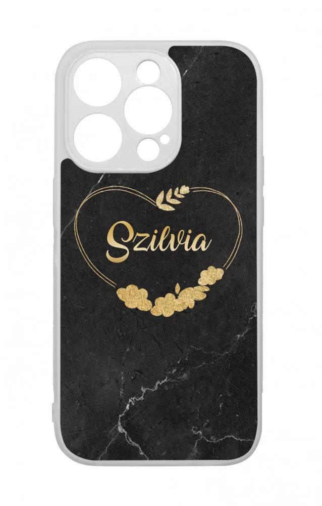 Kérd a neveddel - Marble Heart - szívecske és márvány mintás Apple iPhone 14 Pro készülékre rögzíthető telefontok