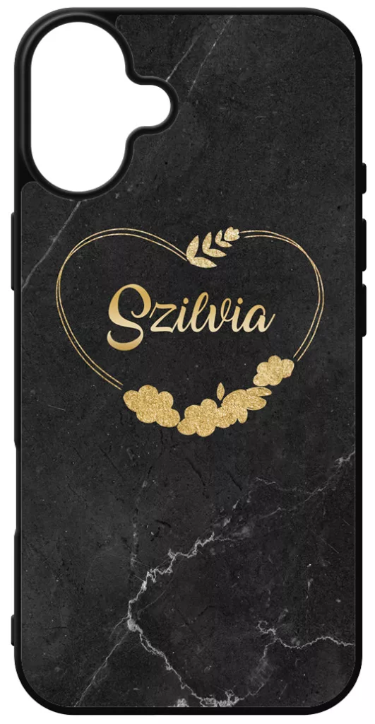 Kérd a neveddel - Marble Heart - szívecske és márvány mintás Apple iPhone 16 Plus készülékre rögzíthető telefontok