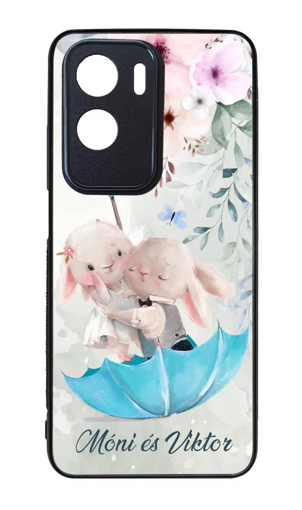 Kérd a neveddel - Esernyős nyuszi szerelem - szilikon Honor tok fekete peremmel