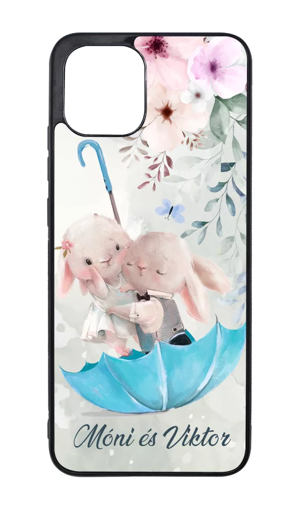 Valentin napi kollekció - Kérd a neveddel - Esernyős nyuszi szerelem Samsung Galaxy A03 készülékre rögzíthető telefontok