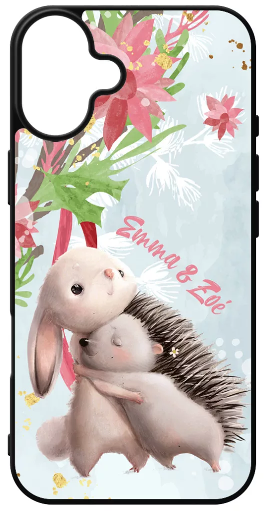CUKISÁG kollekció - Kérd a neveddel - Nyuszi és Süni - Téli mintás Apple iPhone 16 Plus készülékre rögzíthető telefontok