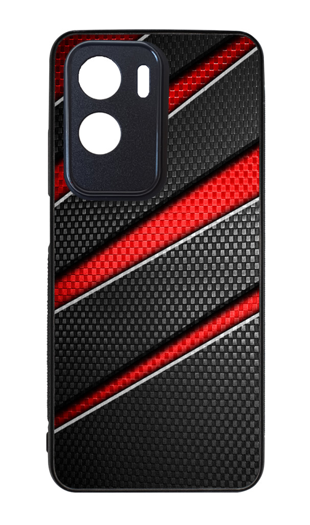 Piros fekete csíkos karbon mintás Honor tok