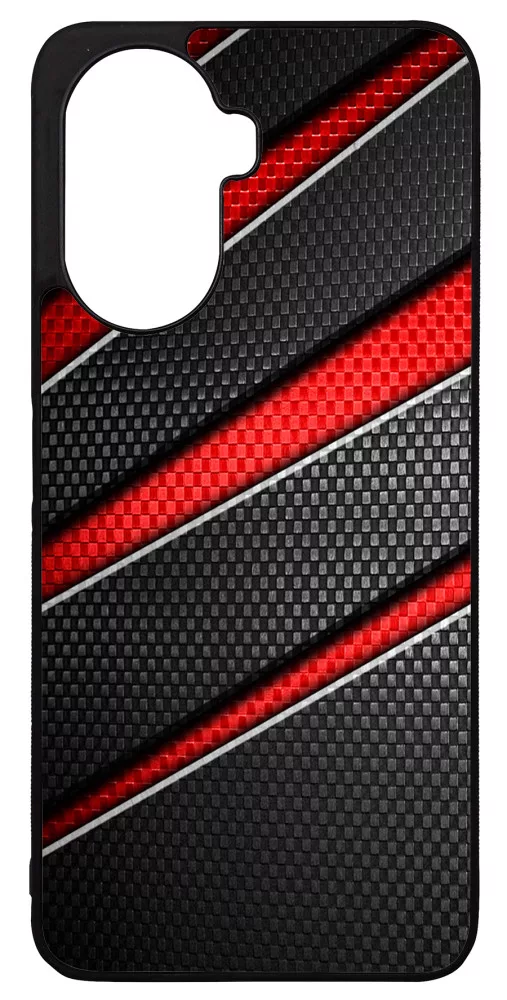 Piros fekete csíkos karbon mintás Huawei Nova Y70 készülékre rögzíthető telefontok