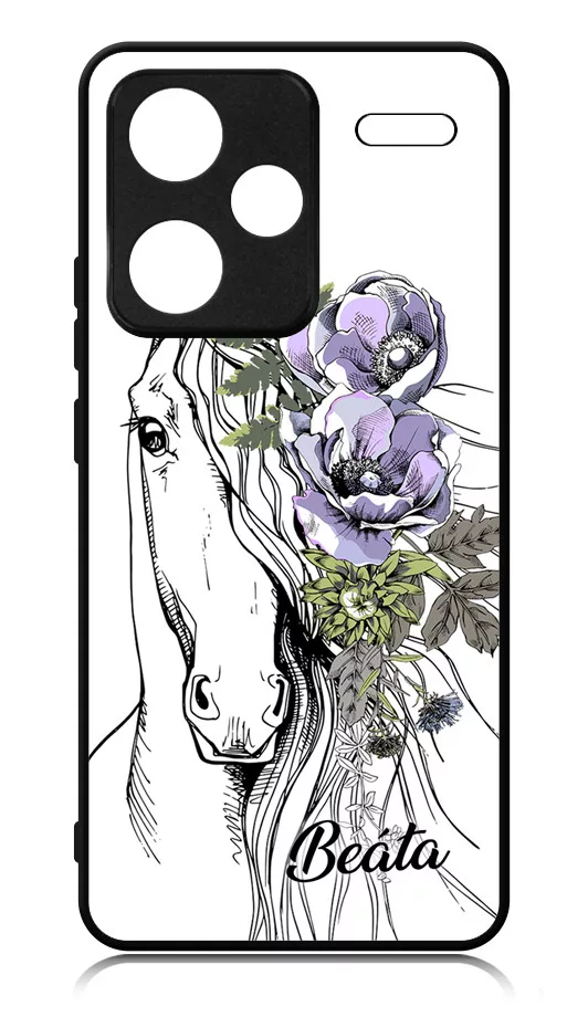 Rajzolt virágos lovas Xiaomi Redmi Note 13 Pro Plus 5G készülékre rögzíthető telefontok