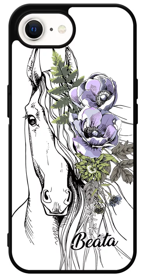 Rajzolt virágos lovas Apple iPhone 16e készülékre rögzíthető telefontok